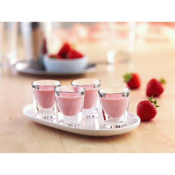 Freak On A Leash CocktailSet 100ml strawberry jelly in two chunky glasses. Blend 50ml Tequila Rose, 40ml butterscotch syrup, 30ml strawberry puree, 80ml vanilla ice cream and 30ml milk, and pour on top of the jelly. Garnish with strawberries, pink wafer and sprinkles. |